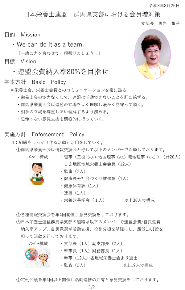 日本栄養士連盟群馬県支部のホームページにようこそ!